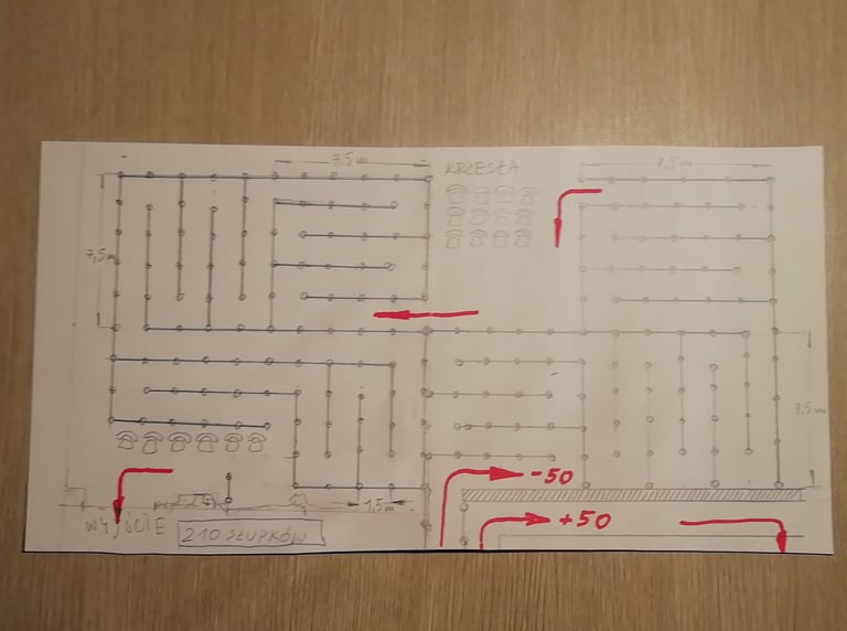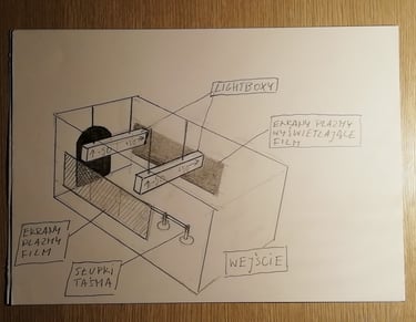 Rysunek autorstwa Z. Libery przedstawiający projekt instalacji w „Sali Konferencyjnej”. Fot. Krzysztof Ogłoza.