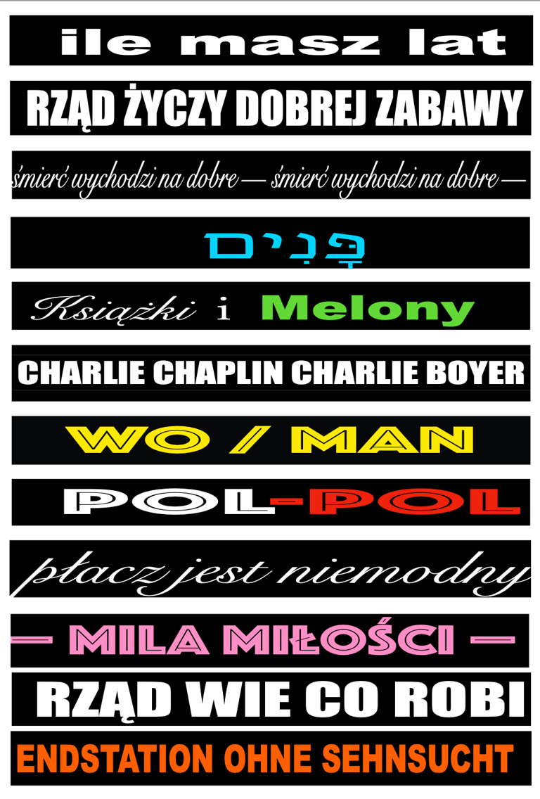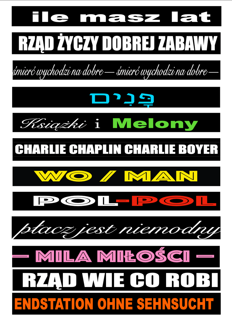 Projekty napisów na taśmach autorstwa Zbigniewa Libery (12 taśm)